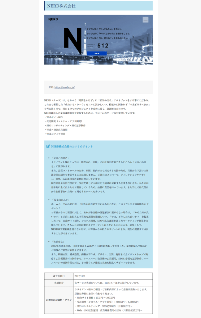 「株式会社アシスト」は、AI技術を活用したSEO対策サービスを提供する会社です。今回、こちらのサイトで「【2024年版】千代田区に強いSEO対策会社:ビジネスを躍進させる企業おすすめ5選!」の1社としてNERDをご紹介いただきました。