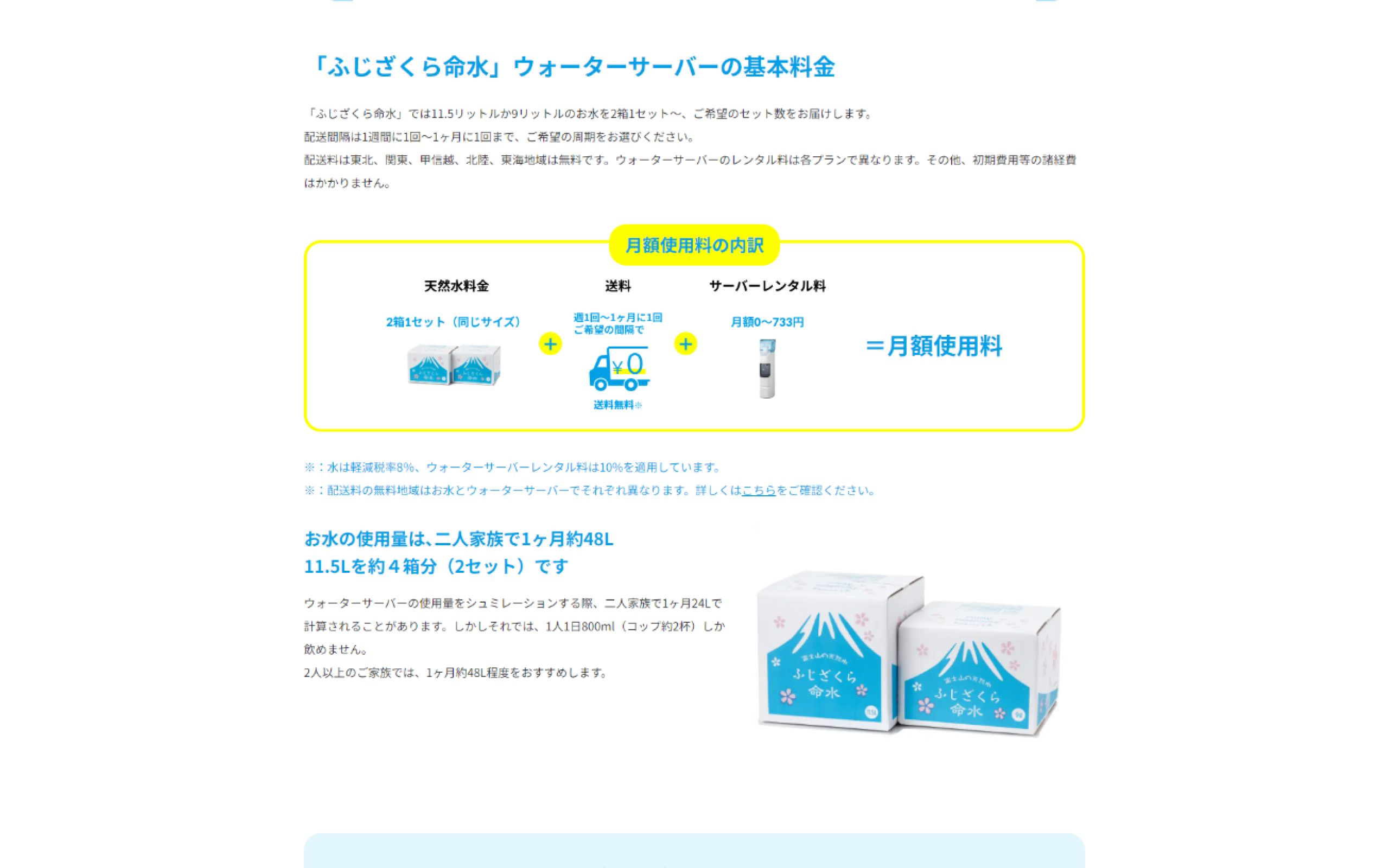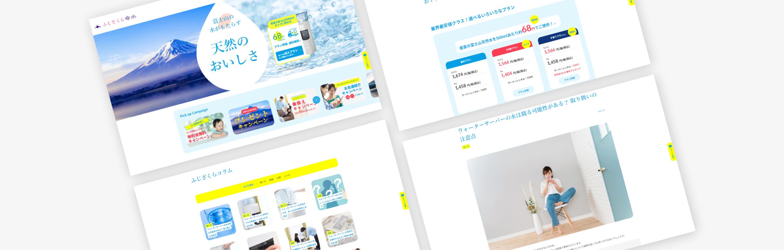 「富士観光開発株式会社」は、レジャー事業を中心にゴルフ事業、不動産事業、生活流通事業、富士桜命水事業等の各分野で事業展開をしています。富士桜命水事業は60年前、まだ富士山には水が出ないといわれた時代に2年間をかけて水脈を見つけくみ出した「ふじざくら命水」をウォーターサーバーで提供しており、ありがたいことに、これまでも他事業のサイトリニューアルやSEO対策等を継続して当社にお任せをいただいています。
