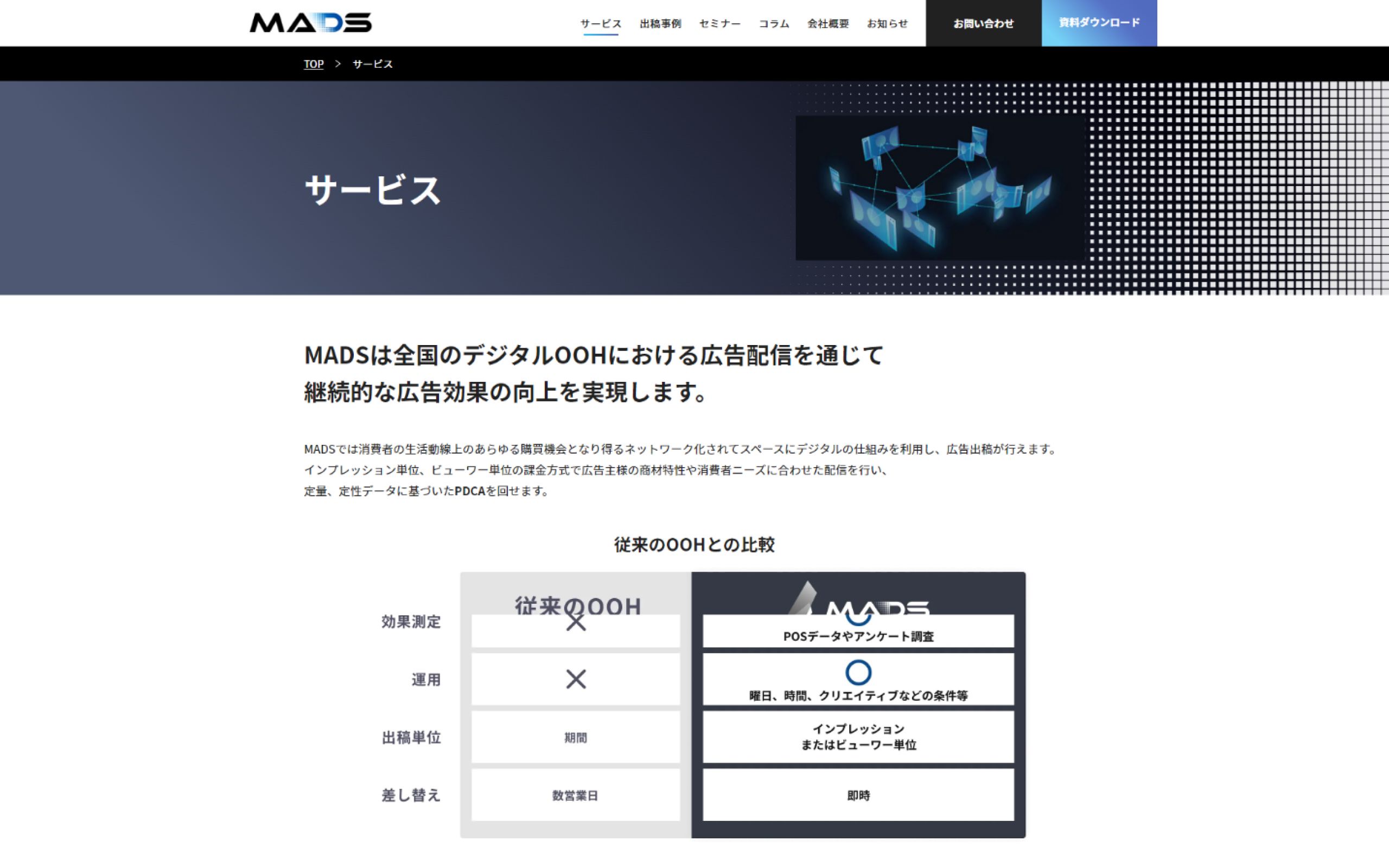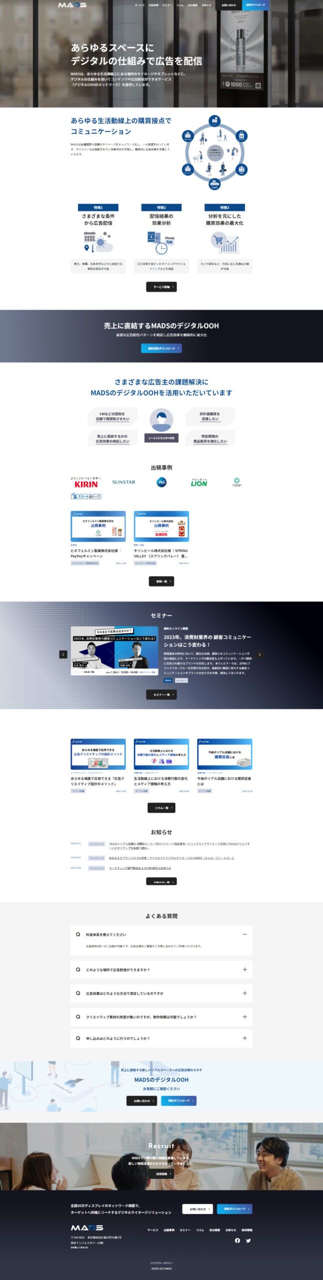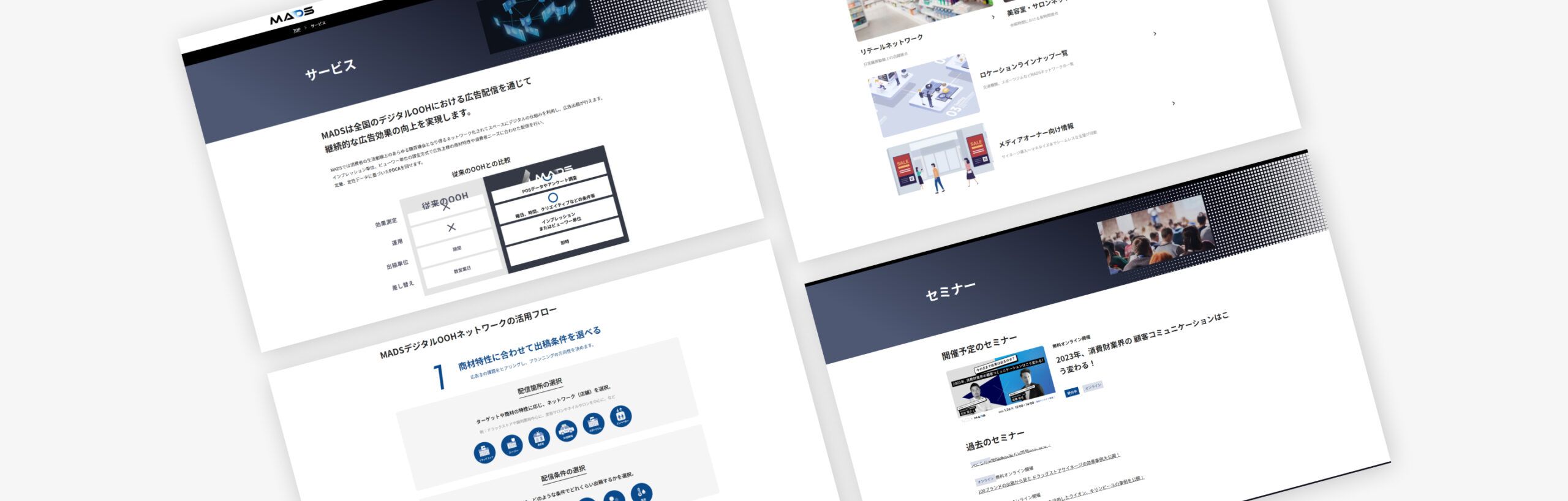 「株式会社MADS」は、タクシー広告やデジタルサイネージ等、デジタルOOHアドネットワーク事業を中心に展開する会社です。この度、コーポレートサイトのリニューアルにあたり、NERDに制作のご相談、ご依頼をいただきました。