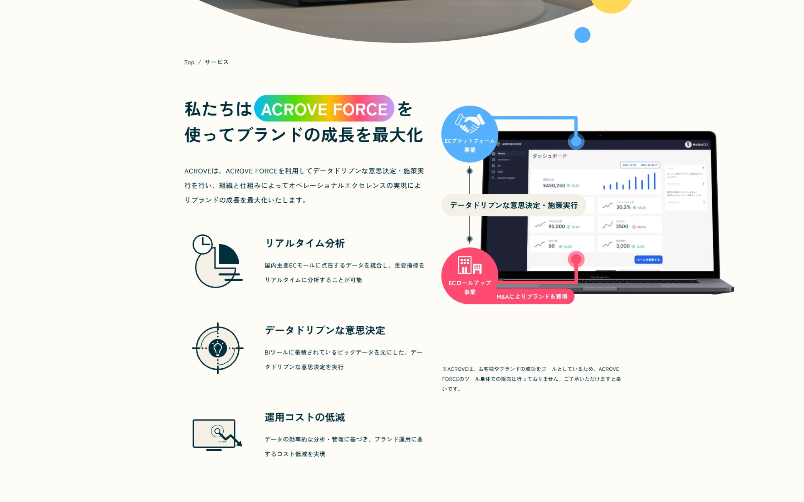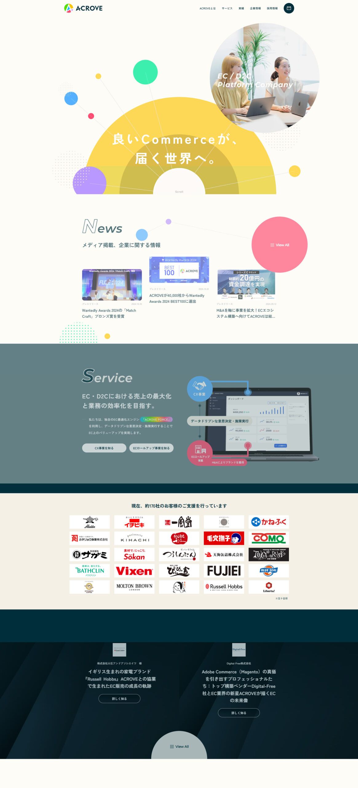 株式会社ACROVEは、ECやD2Cにおける売上の最大化と業務の効率化を目指し、ECサイトの運営やECサービスをデータドリブンに運用し、改善・サポートを行っている会社です。この度、コーポレートサイトのリニューアルについてNERDにご依頼をいただきました。