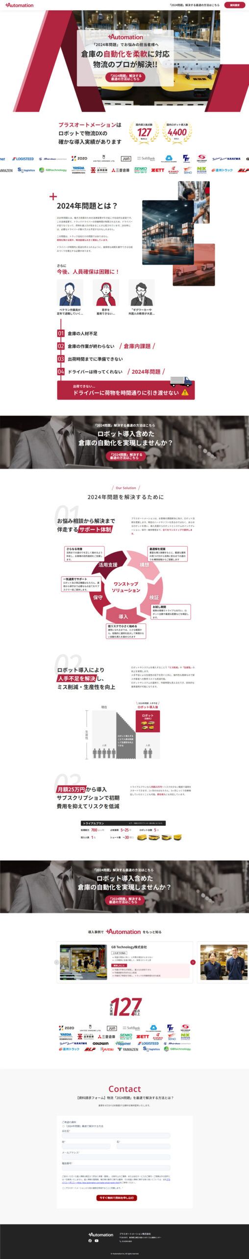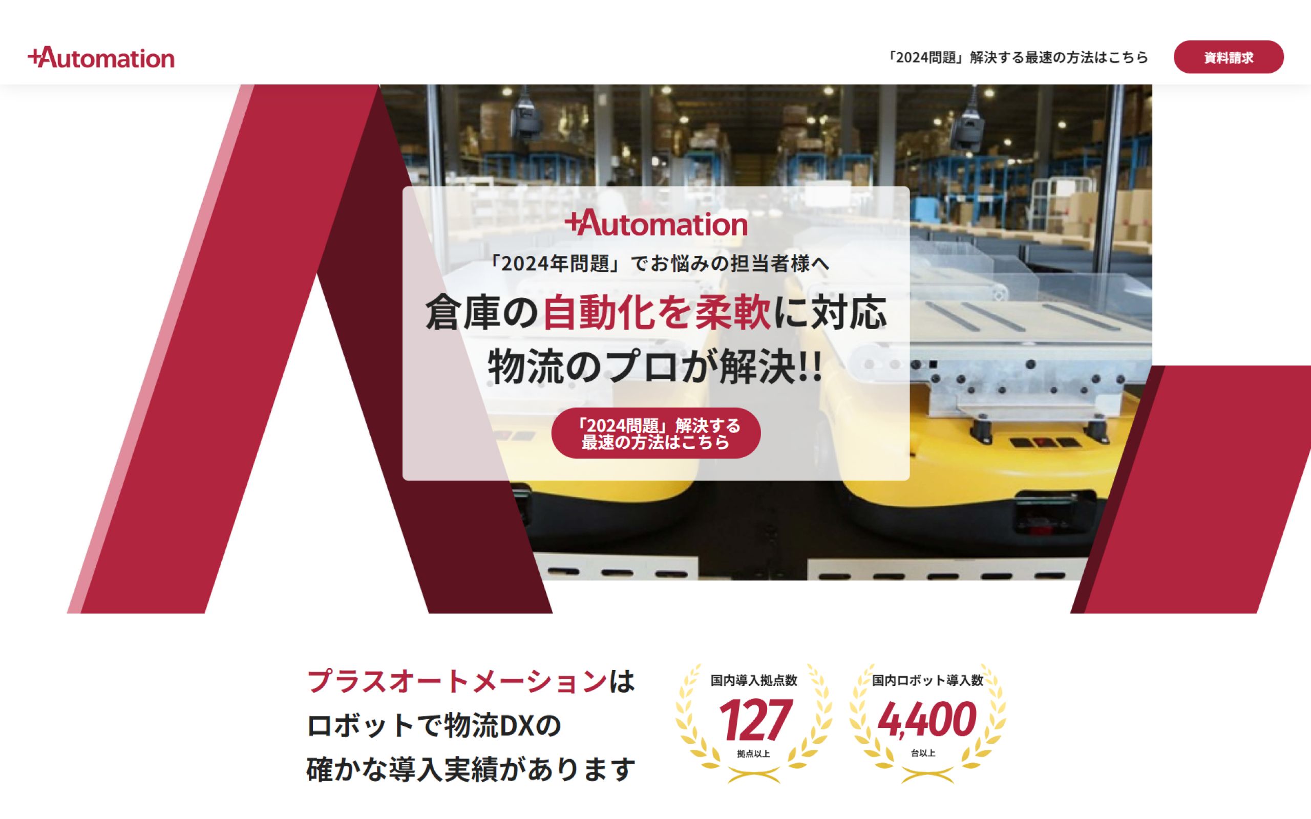 https://plus-automation.com/pr/2024/プラスオートメーション株式会社は、ロボットを活用した倉庫の自動化を行う物流のコンサルティング会社です。この度、BtoB広告用のランディングページ(LP)制作について、NERDにご依頼をいただきました。