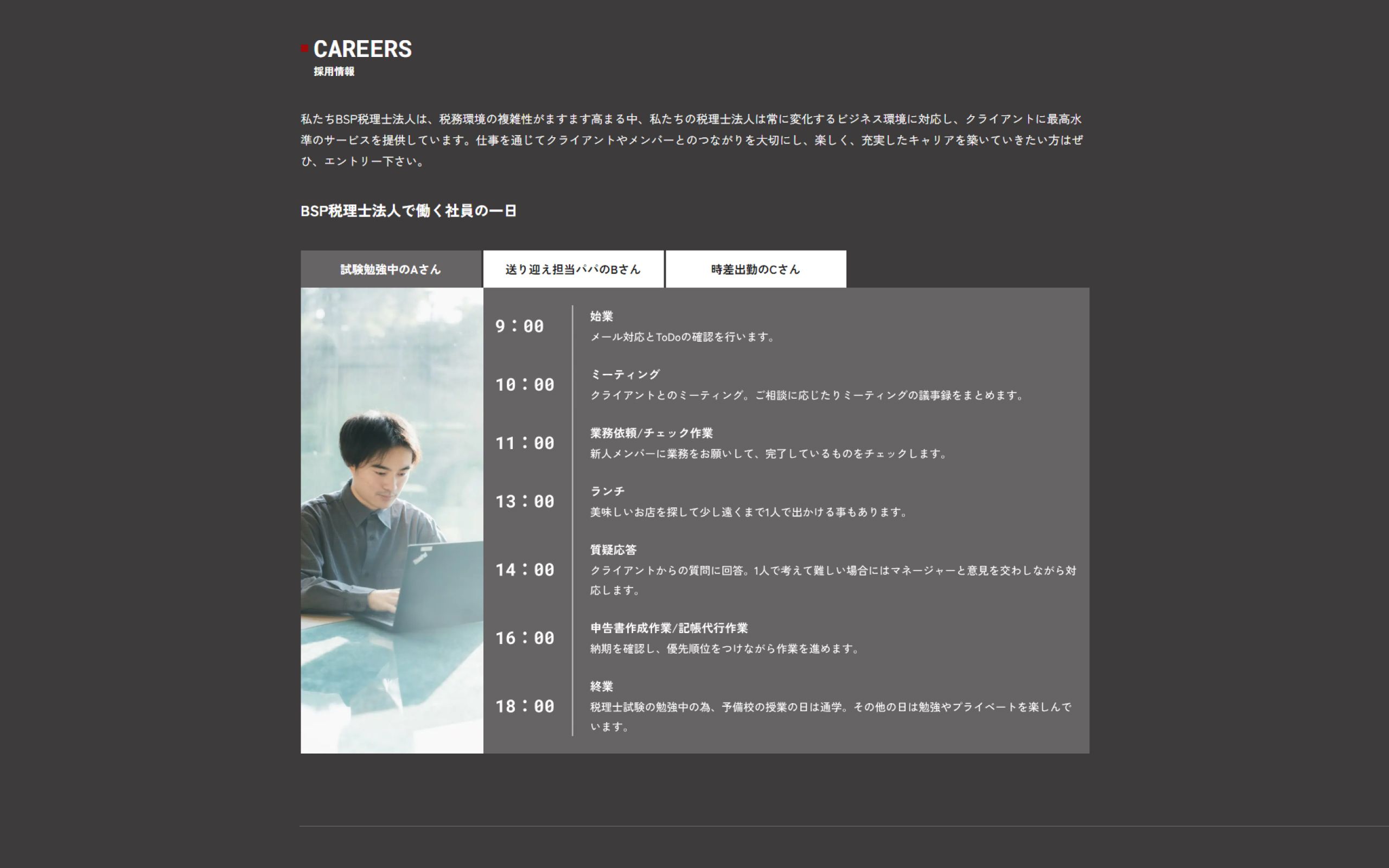 BSP税理士法人は、個人や企業の税理業務における書類作成や申告業務、税務相談等を通じたサポートを行っています。この度、採用サイトの制作について、NERDにご依頼をいただきました。