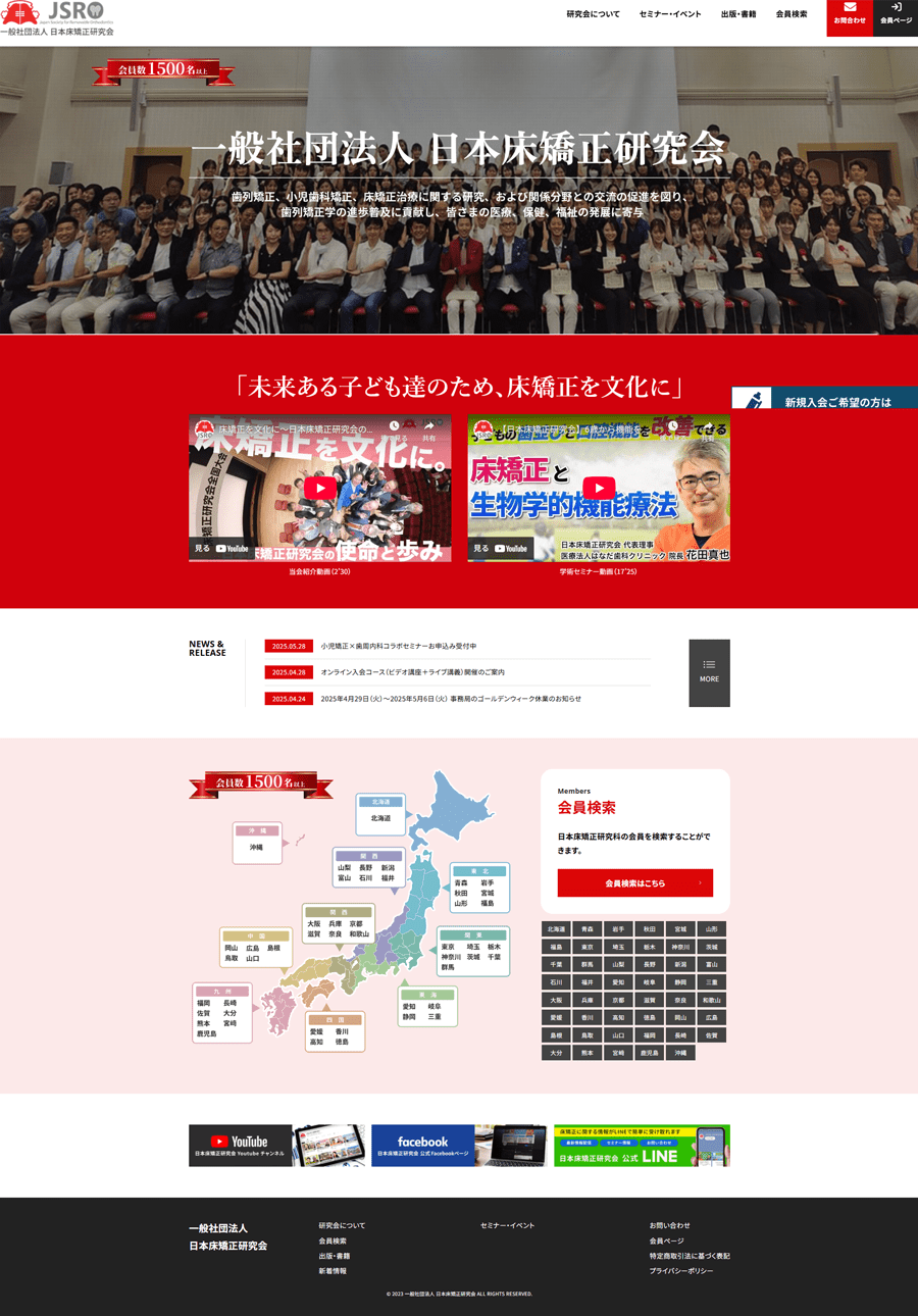 日本床矯正研究会は、ヨーロッパで主流の床矯正を用いた矯正治療法に加え、小児の理想的な発育成長を見据えた食育ならびに機能訓練、バイオファンクショナルセラピー等を行うことで、成人矯正治療が必要ない子供たちを育てることを目的として発足した一般社団法人です。この度、サイトの保守についてNERDにご依頼をいただきました。