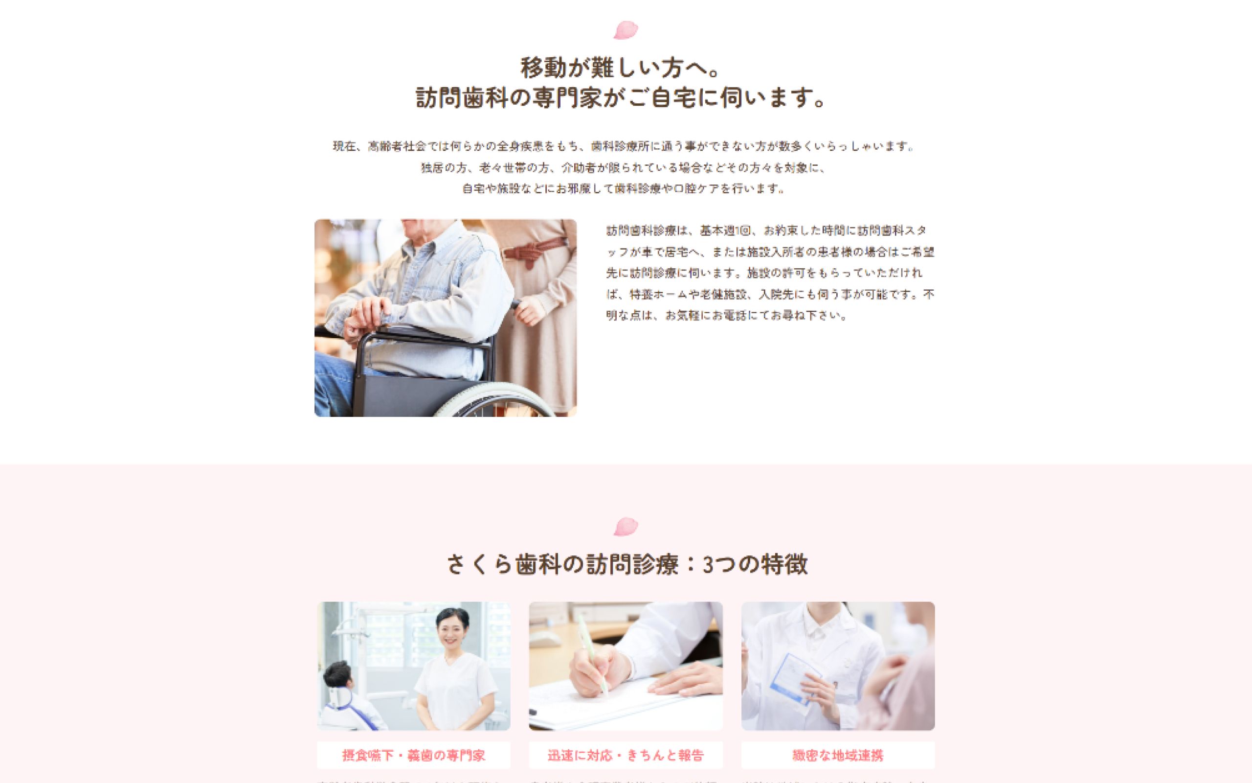 リニューアルにあたり、歯科医院名の「さくら」のとおり、柔らかいサイトイメージにしたいとのご要望をいただきました。サイトリニューアルの内容については、全てNERDにお任せをいただきました。
