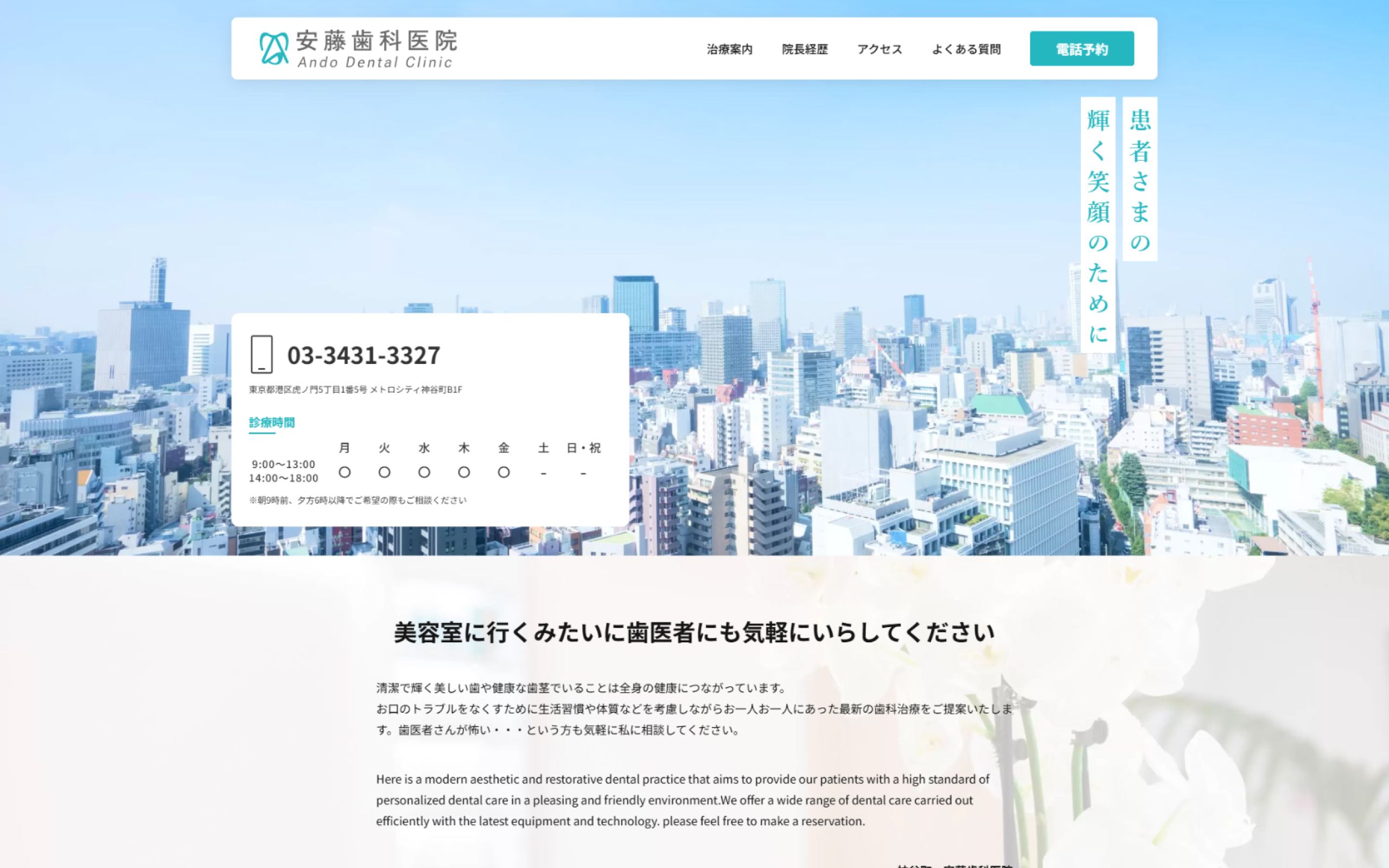 https://andodental.main.jp/安藤歯科医院は、東京都港区虎ノ門にて展開する歯科医院です。この度、歯科医院の開院にあたり、店舗サイトの制作についてNERDにご依頼をいただきました。