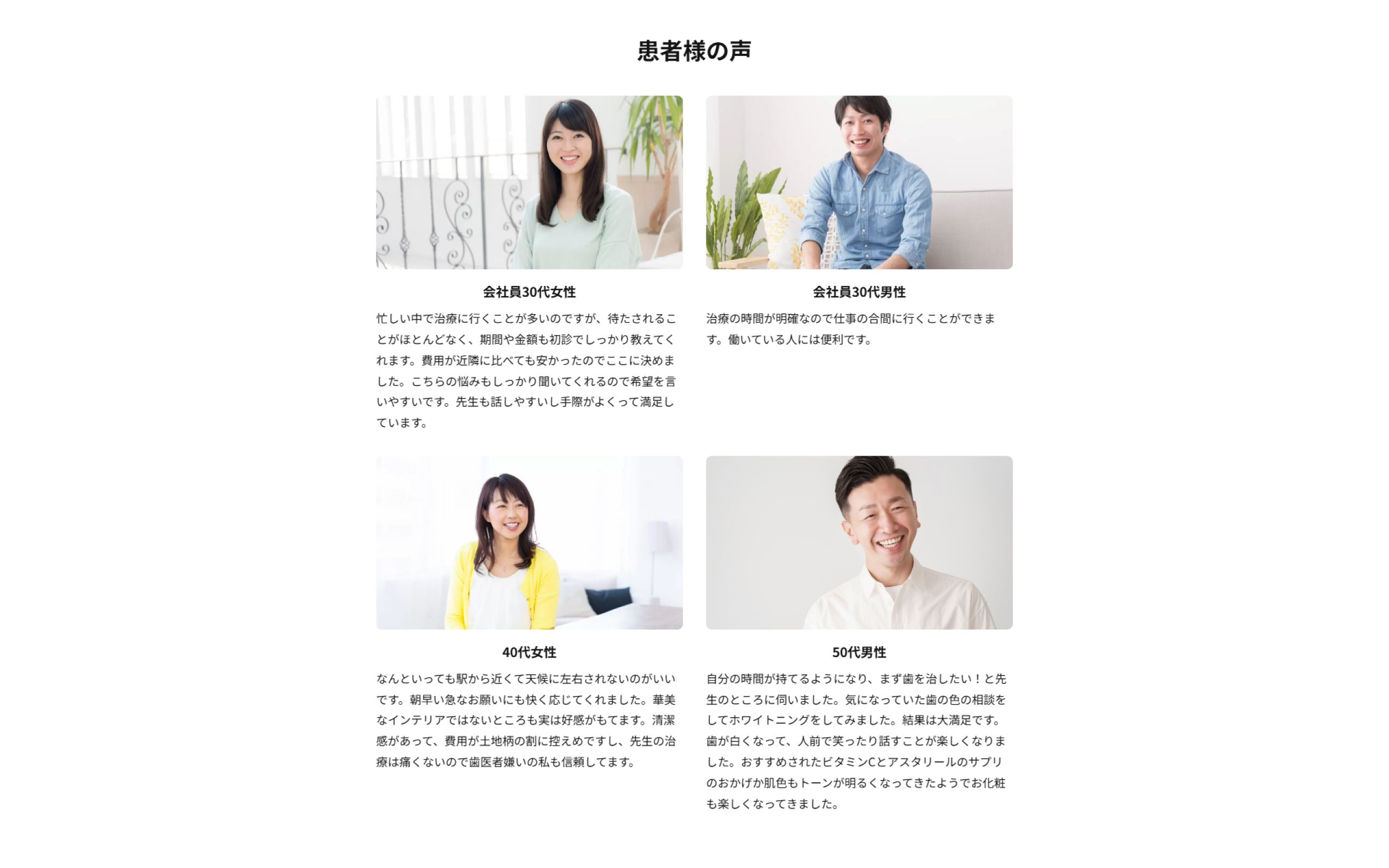無事に費用面・掲載内容ともにクライアント様の要望を叶えたwebサイトを制作・納品することができました。webサイトを見た方から電話での来院予約が入っており、好評をいただいていると聞いています。今後もお困りのことがありましたら、サポートさせていただきます。