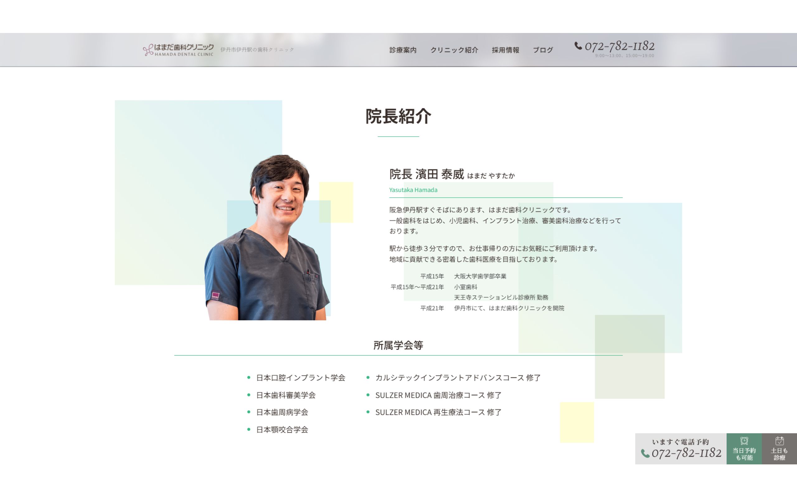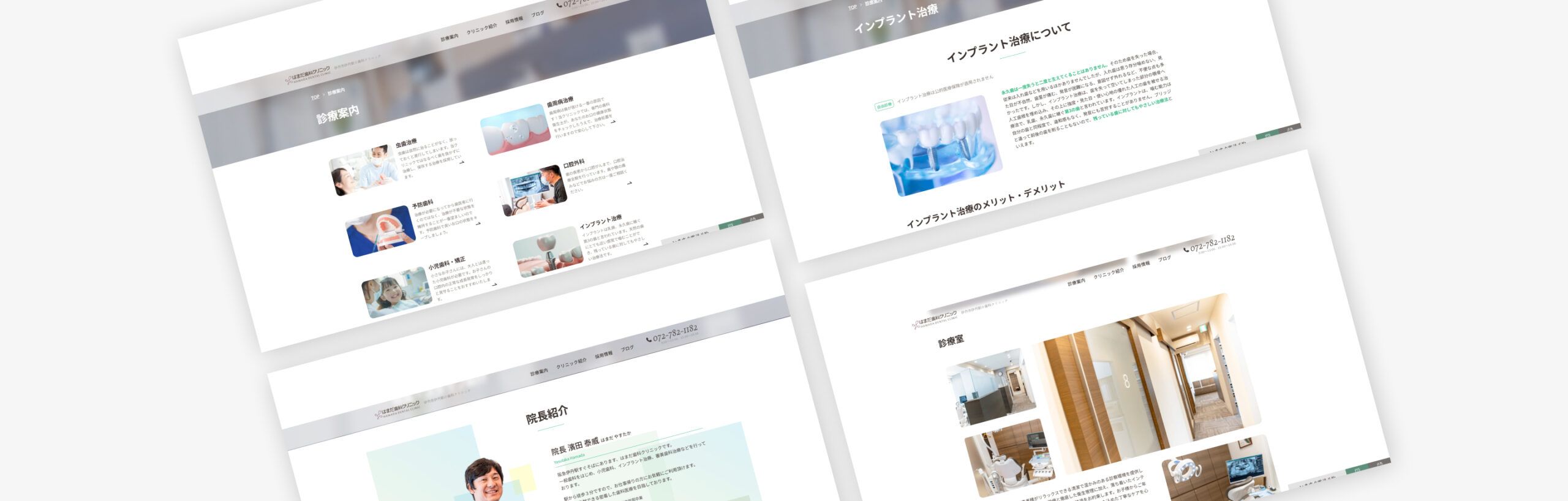 クライアント様は技術力が高く、インプラント治療など難しい施術を複数人の歯科医師が対応できる点や、しっかりとした歯科医院であることをデザインで表現しました。